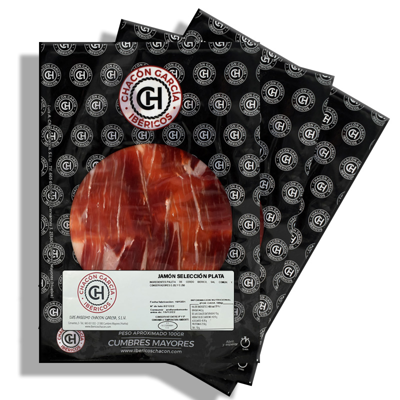 Oferta de 3 sobres de Jamón Selección Plata en envases al vacío de 100 gr.